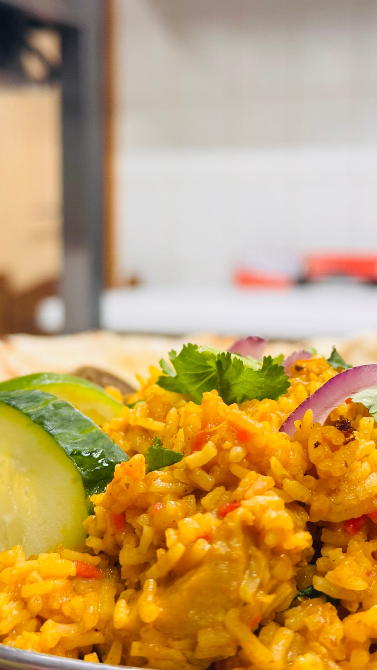 Riz basmati parfumé et agrémenté de morceaux de poulet épicés et d’aromates. Le plat typique des jours de fêtes indiennes. Lait, gluten, moutarde, céleri, sulfites
